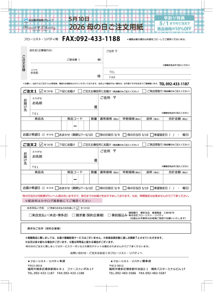 母の日専用のオーダーシートがございますので