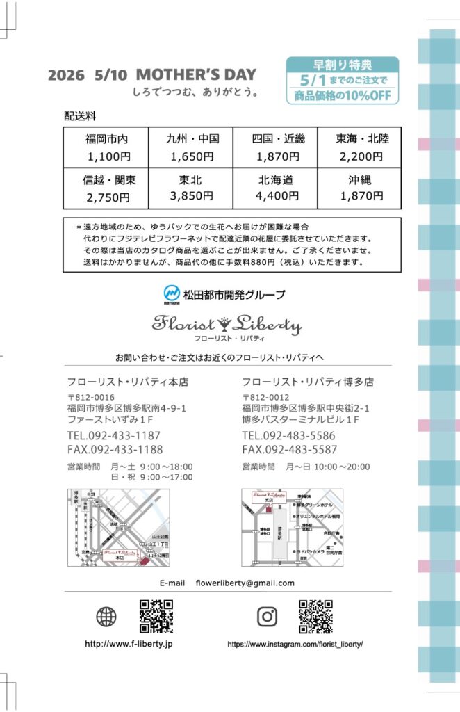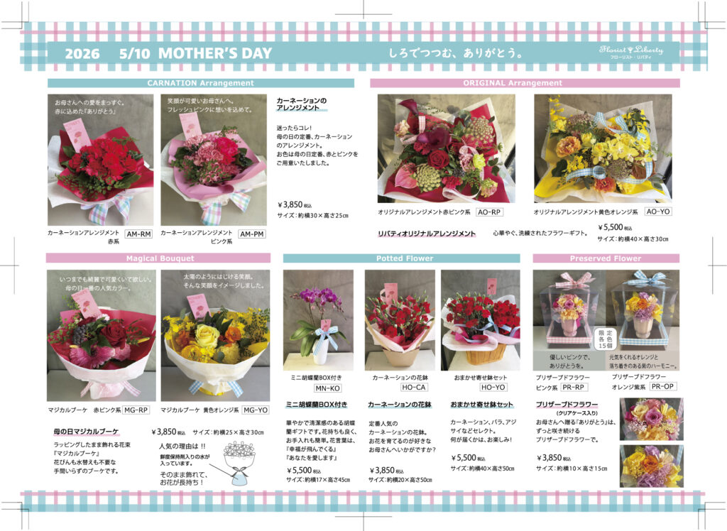 いつもフローリスト・リバティをご愛顧いただきありがとうございます。